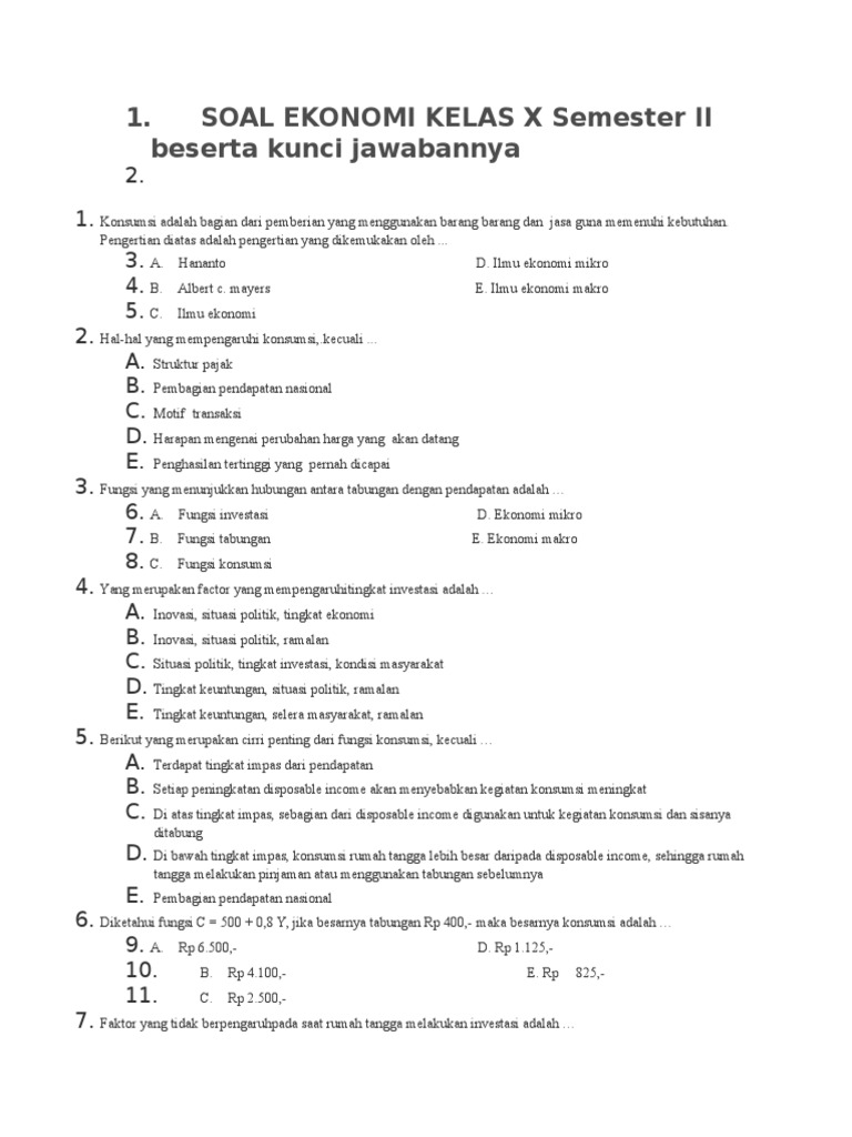 Soal dan jawaban uts ekonomi kelas 10 semester 2. Lingkup penilaian hasil belajar oleh satuan pendidikan mencakup aspek pengetahuan dan aspek keterampilan, sedangkan penilaian aspek sikap dilakukan oleh pendidik dan dilaporkan oleh satuan pendidikan. Materi ilmu ekonomi,,, ekonomi dalam bahasa yunani adalah oikos dan nomos dan dapat diartikan sebagai tindakan manusia dengan hubungan dengan produksi dalam penjualan dan konsumsi. Maka kami juga memberikan contoh soal ekonomi kelas (x) 10, semester 1 dan 2, dan jawabannya. Pendidikan kewarganegaraan untuk kelas 10 atau untuk tingkat sma/ma ialah salah satu mata pelajaran yang terdapat di setiap sekolah negri dan. Demikian pembahasan mengenai pelatihan soal penjas kelas 10 sma/ma. Soal ini sesuai dengan ki dan kd kurikulum 2013. Berikut ini kami akan bagikan soal pat ekonomi peminatan kelas 10 dan jawabannya. Dalam soal konsep dasar ilmu ekonomi ini, jenis soal yang kami sajikan yaitu soal pilihan ganda/ pilgan (multiple choice) sejumlah 30 pertanyaan. Seorang ahli ekonomi yang memelopori pembahasan ekonomi secara sistematis dan menguraikannya secara ilmu pengetahuan. Mata pelajaran ekonomi untuk siswa kelas 10 yang sudah disertai dengan jawabannya. Barang apa yang akan diproduksi b. Contoh soal descriptive text pilihan ganda dan jawabannya sumber :